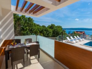 Za zajedničko korištenje, tu je i terasa sa bazenom, ležaljkama, suncobranom i roštiljem.